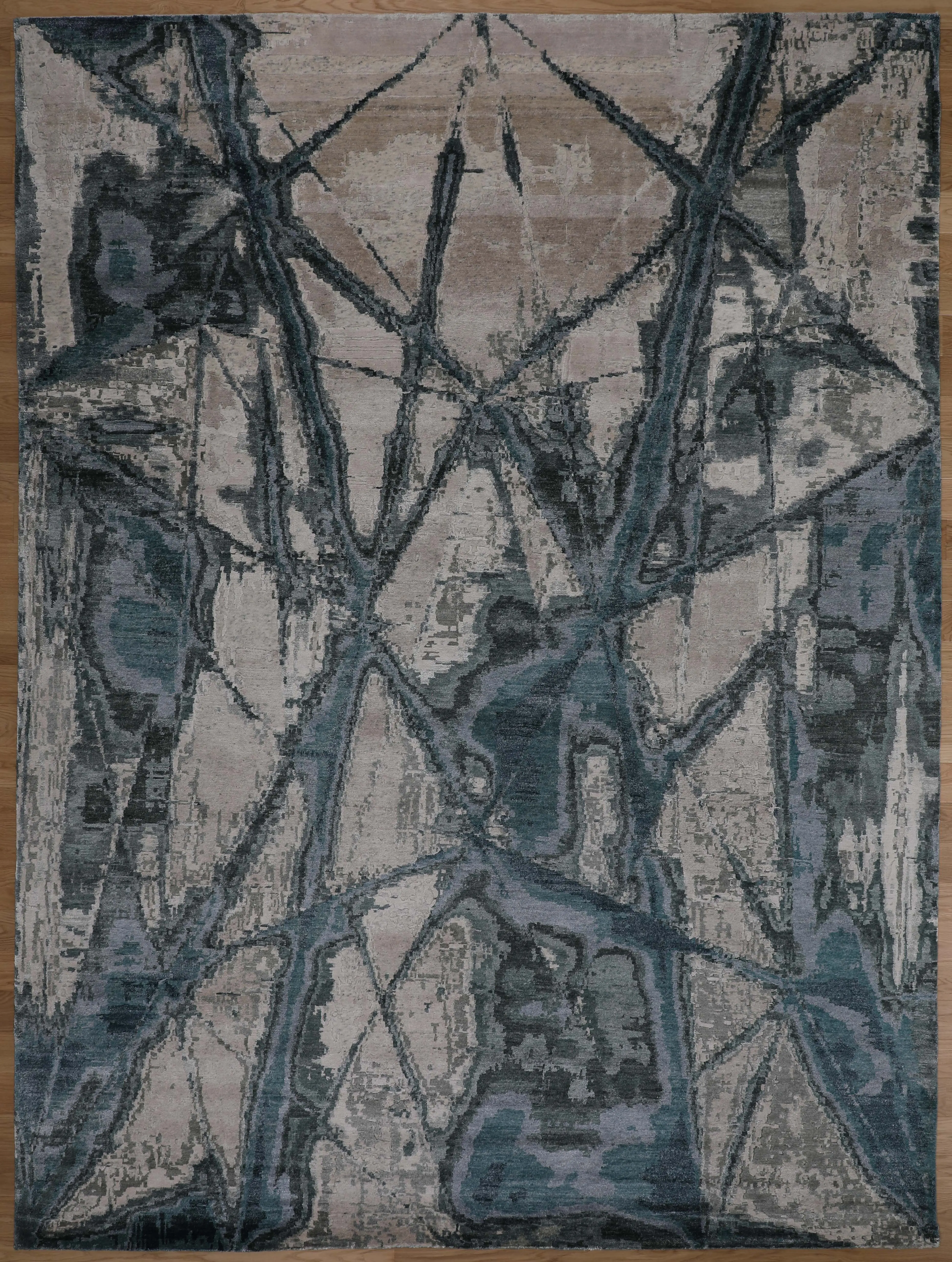 Color: IVORY/GREEN - Composition: BAMBOO SILK 60%, WOOL 20%, COTTON 20% - Quality: 100 KNOTS TIBETAN WEAVE - Origin: India - Order Only
